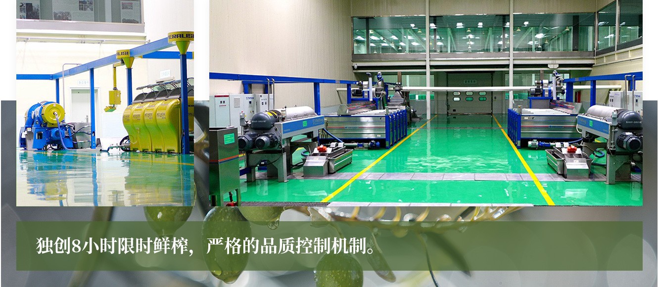 為了生產(chǎn)出頂級(jí)品質(zhì)的橄欖油,公司專門訂制了5萬個(gè)食品級(jí)專用果筐,從采摘到壓榨控制在8小時(shí)以內(nèi),先后引進(jìn)了一條意大利貝亞雷斯和兩條德國(guó)福樂偉橄欖油冷榨生產(chǎn)線,建成了亞洲最大的特級(jí)初榨橄欖油生產(chǎn)車間。